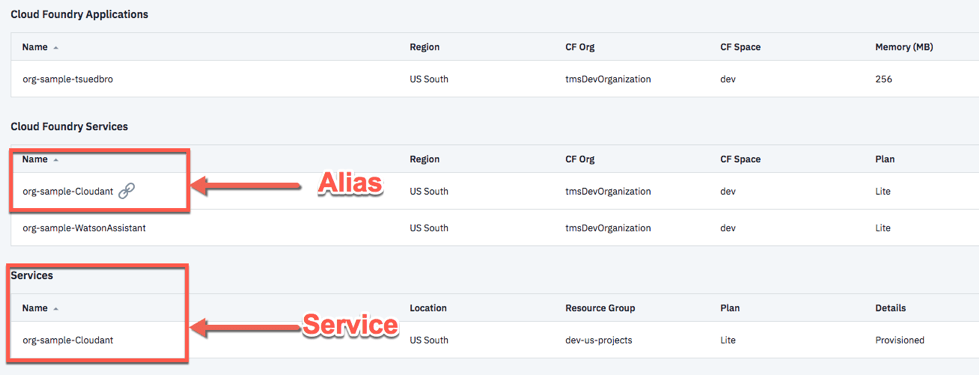 As you can see in the picture, you will have later two resources in your IBM dashboard: The IAM enabled service instance itself and the Cloud Foundry Alias.