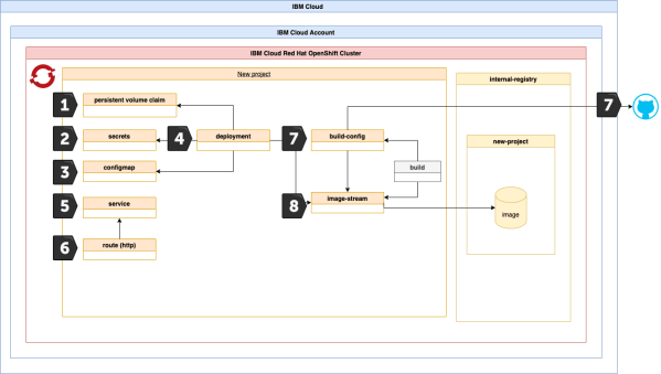 This cheat sheet is an extension to a blog post I made which is called: Configure a project in an IBM Cloud Red Hat OpenShift cluster to access the IBM Cloud Container Registry . In that related blog post we used the IBM Cloud Container registry to get the container images to run our example application. Now in this cheat sheet we will use the Red Hat OpenShift internal container registry and the Docker build strategy to deploy the same example application to OpenShift.