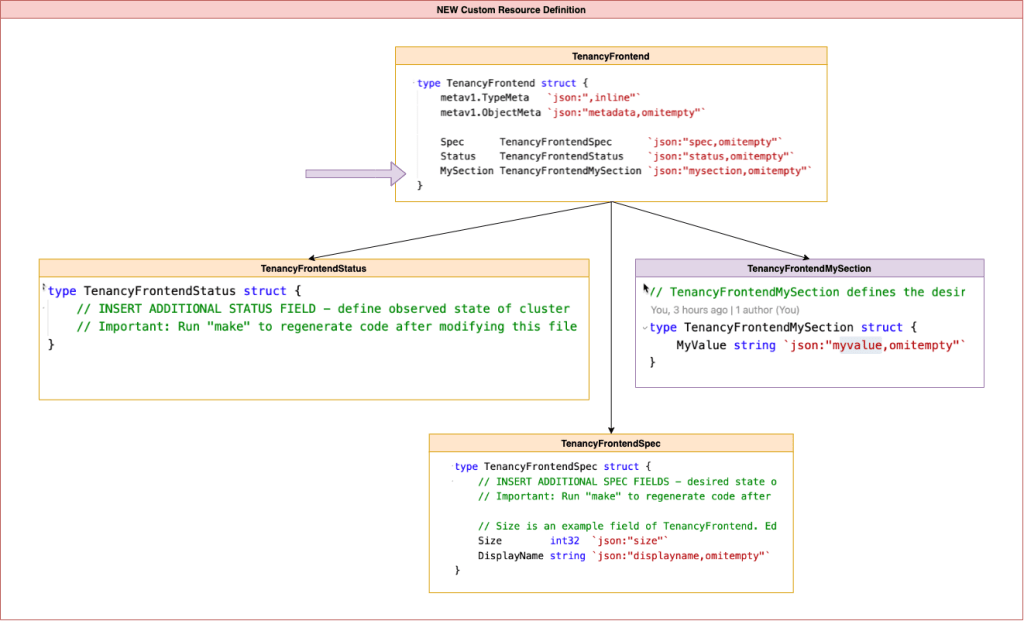 Step 2: Add the name of the struct TenancyFrontendMySection to the TenancyFrontend struct in the tenancyfrontend_types.go file¶