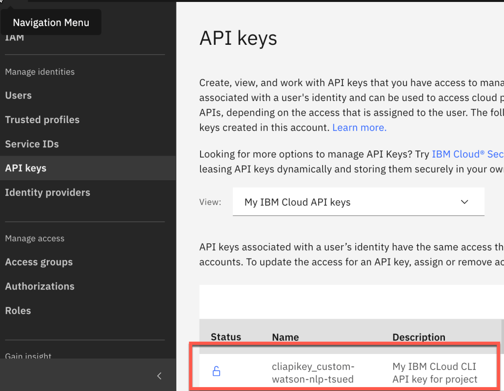 Creating API key cliapikey_custom-watson-nlp-tsued under 641ebfXXXXXXb45279e as XXXXX...
