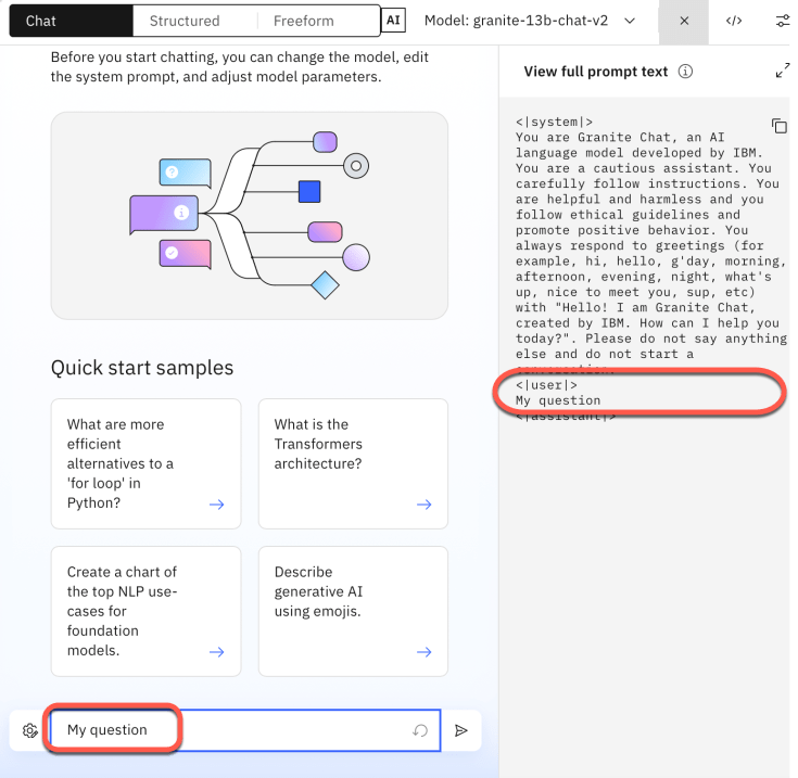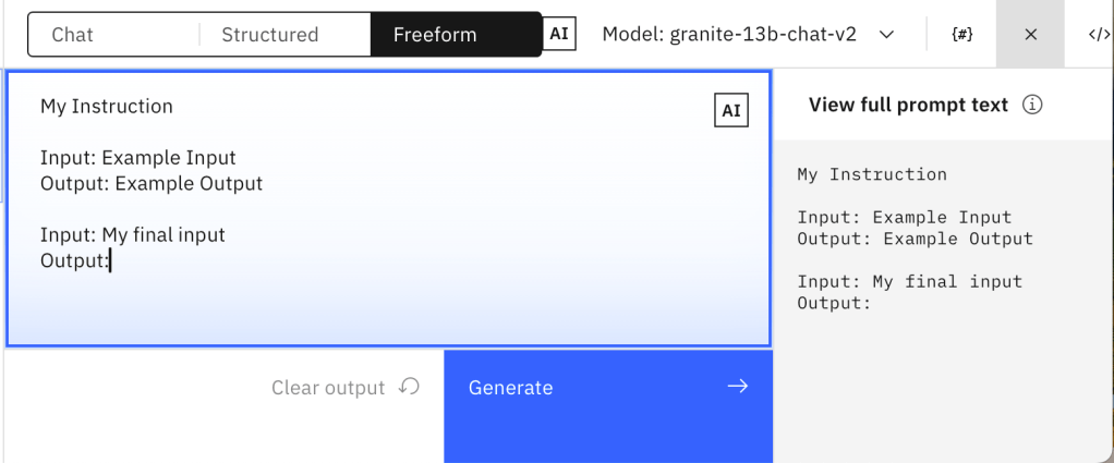 In the “Freeform” tab, we are fully responsible for the entire prompt. I copied the prompt-text from the “structured tab”.