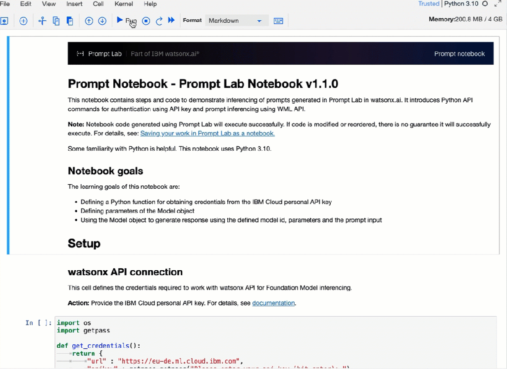 Using the Prompt Lab in watsonx.ai provides an excellent manual starting point and allows us to turn manual prompt execution into initial automation using Jupyter Notebooks.