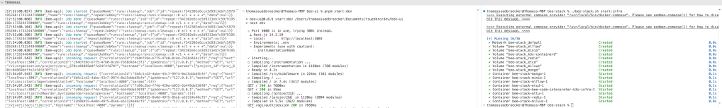 Note: If we want to add additional content to the infrastructure start, we need to edit the bee-stack/docker-compose.yml file. For example, we should add infra to profiles: [ all, infra ] in this example when we want the bee-observe to also be available as infra for our development.