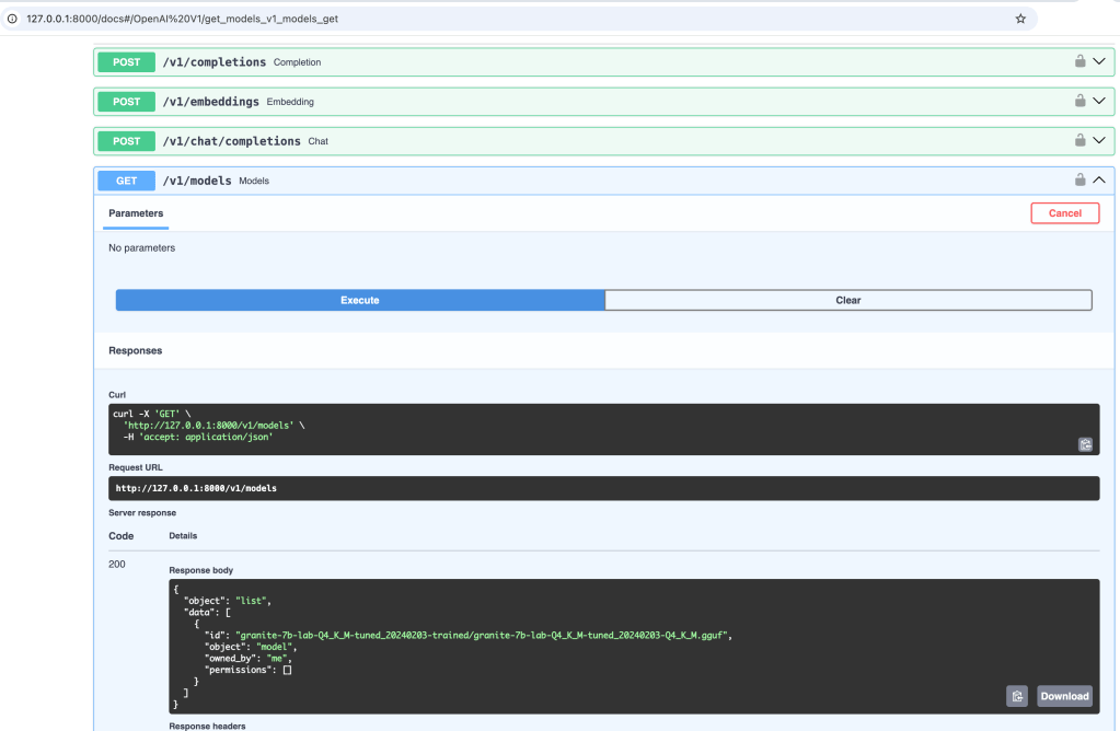 INFO 2025-01-31 09:54:04,137 instructlab.model.backends.llama_cpp:233: After application startup complete see http://127.0.0.1:8000/docs for API.