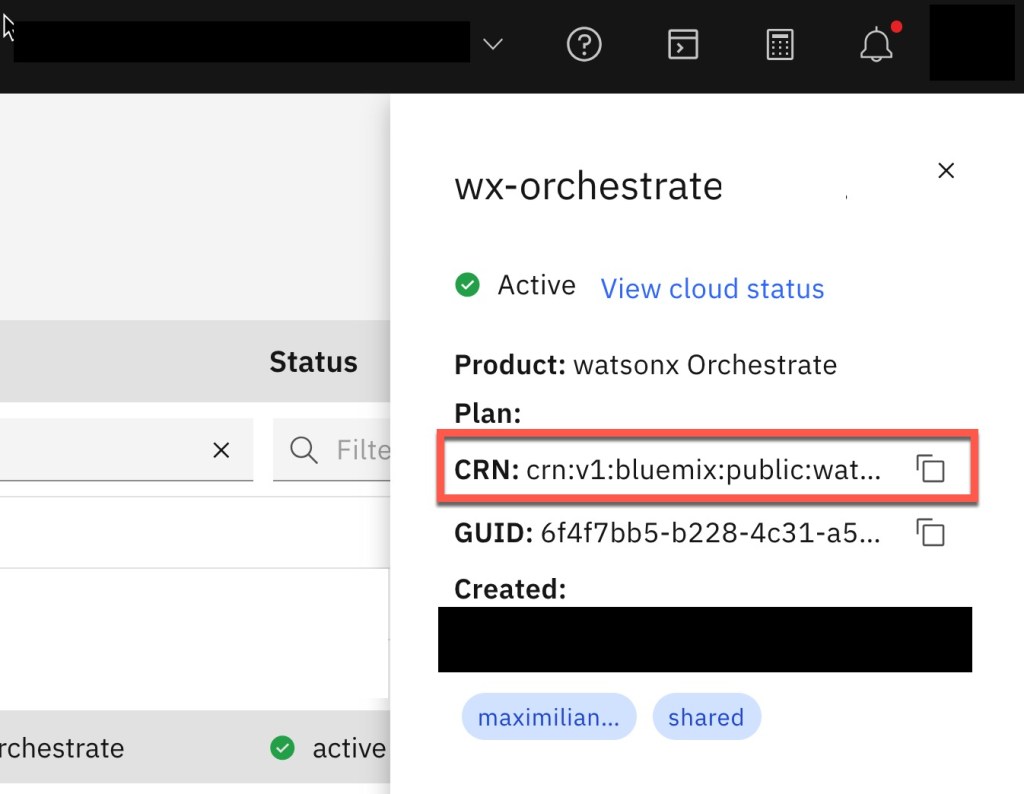 Please enter your CRN which can be retrieved from the IBM Cloud UI: