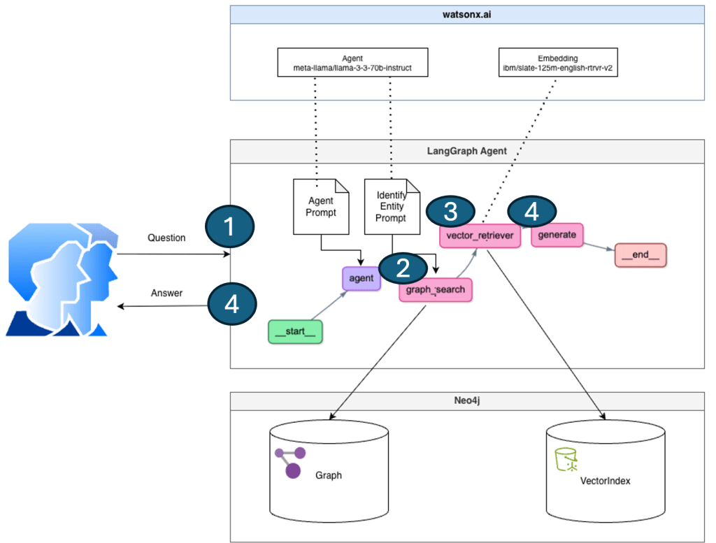 The combination of Knowledge Graphs and Retrieval-Augmented Generation (RAG) is becoming increasingly popular, especially with the growing use of Knowledge Graph databases like Neo4j. To explore this combination, I started with the example Graph RAG template with LangGraph and Neo4j from the watsonx developer hub The Graph RAG template with LangGraph and Neo4j 🚀.