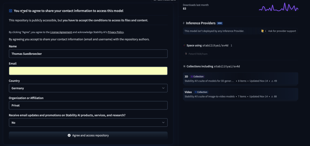 Stable Diffusion and Stable Video Diffusion models are hosted on Hugging Face. You need read access to download the models.