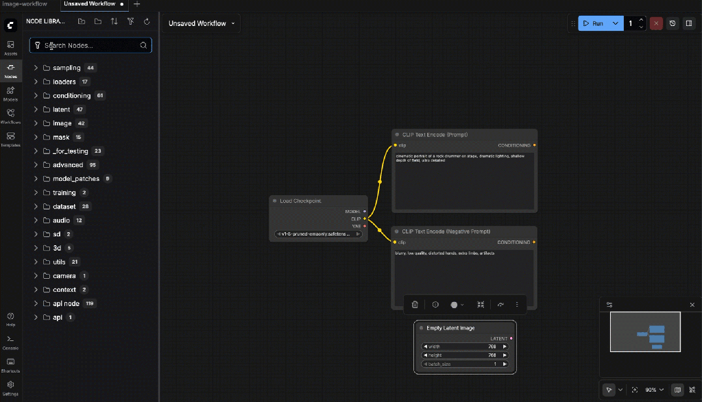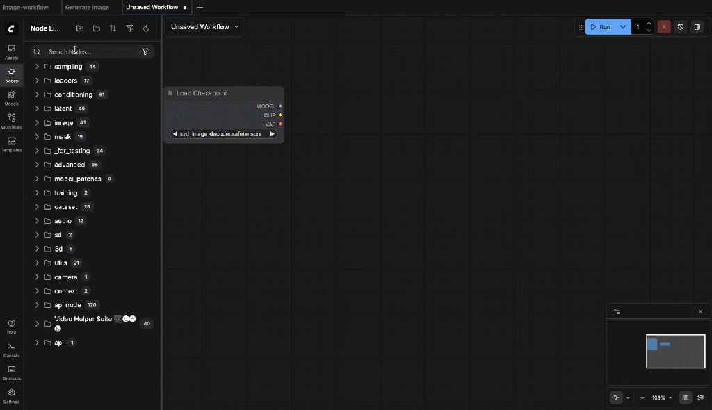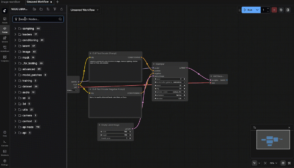 Node-based UI used to build and run all image and video workflows. - PyTorch