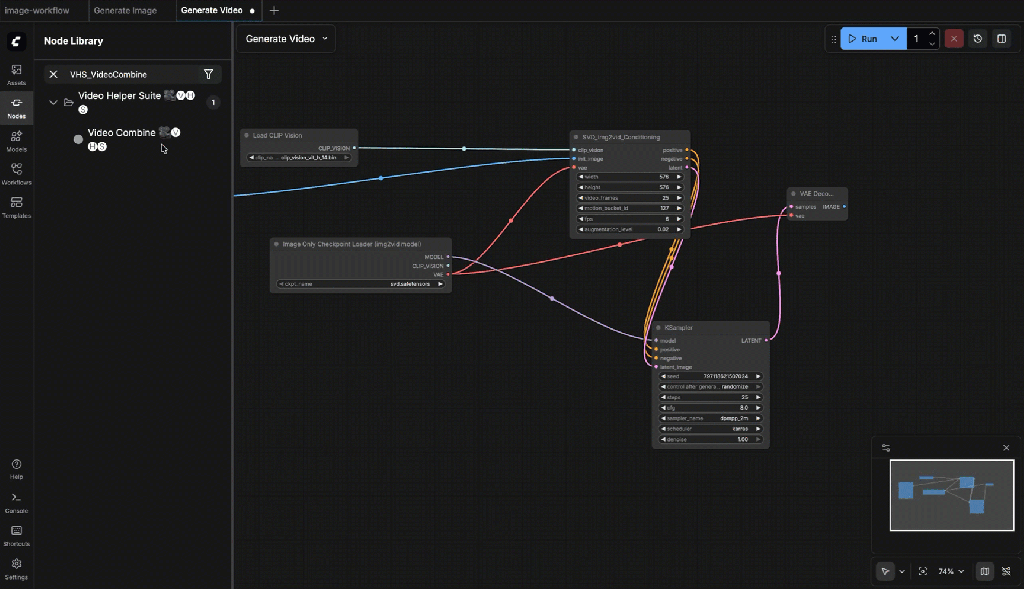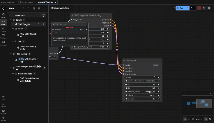 Provides video-related nodes such as Video Combine for MP4 export. - FFmpeg