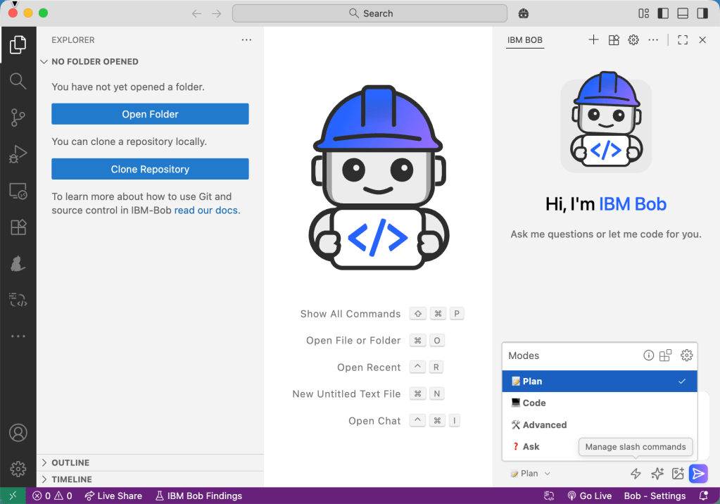 For those readers who don’t know IBM Bob, IBM Bob can be your AI SDLC tool that augments existing workflows, helping you plan, code, tackle advanced topics, or answer questions related to your codebases.