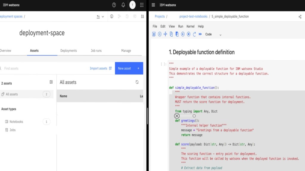 One option is to use Jupyter Notebooks. This post is a cheat sheet showing how to develop a deployable function for AI assets and then deploy it so it can be invoked inside an application.