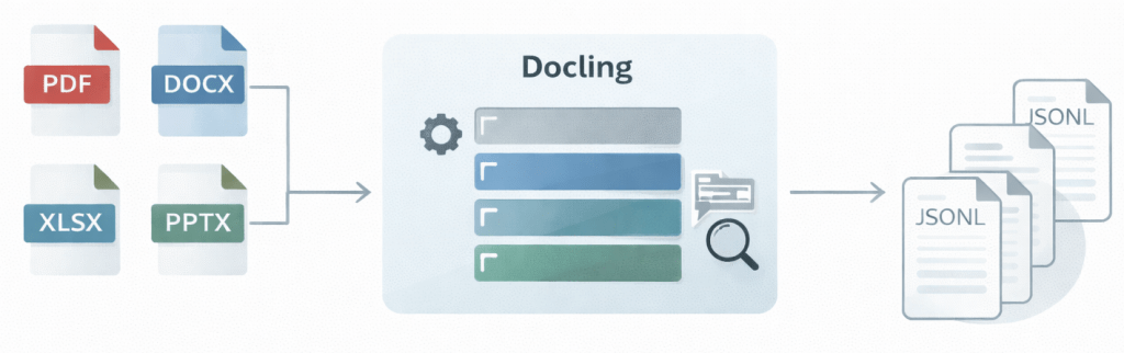 It is an open-source project that provides a reusable, class-based preprocessing pipeline to extract structured, unit-level text from common document formats (PDF, Word, Excel, PowerPoint) using Docling.