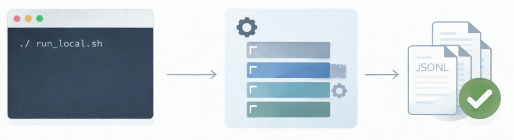 The pipeline runs locally on macOS, uses open-source dependencies only, and relies on environment variables for runtime configuration.