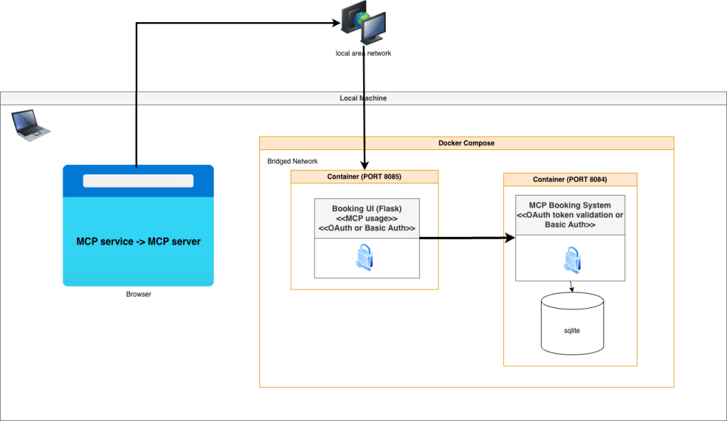 Booking UI (Flask)MCP Booking SystemSQLite