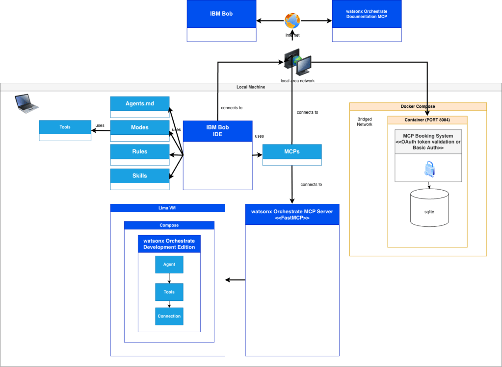 The second repository provides the practical guide for connecting that infrastructure to watsonx Orchestrate and preparing IBM Bob for the agent-generation workflow.