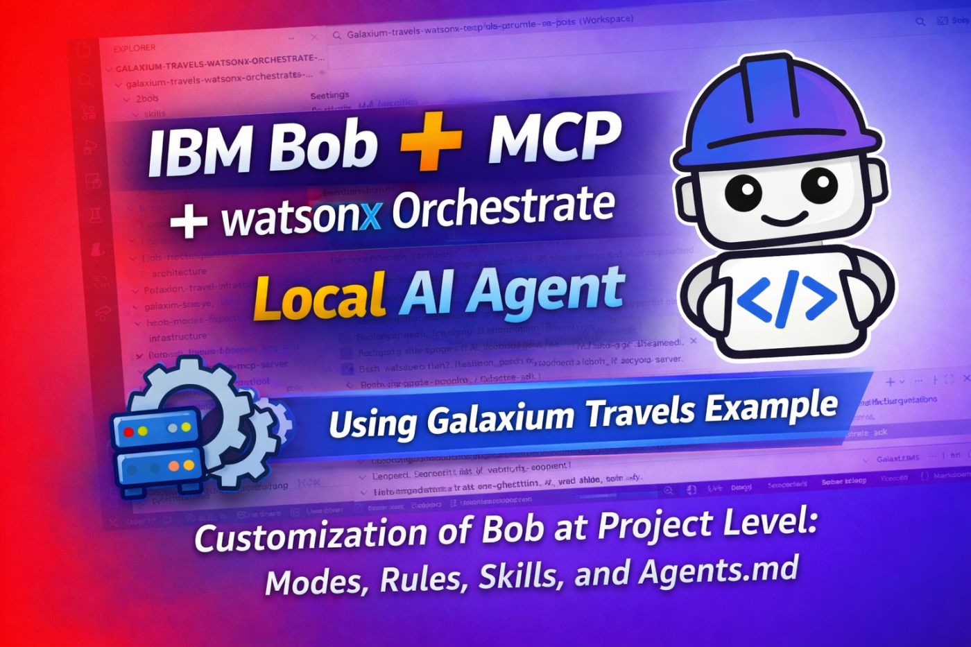 After explaining the role of IBM Bob, MCP, the Galaxium Travels infrastructure, and watsonx Orchestrate Developer Edition, the video moves into the actual hands-on flow.
